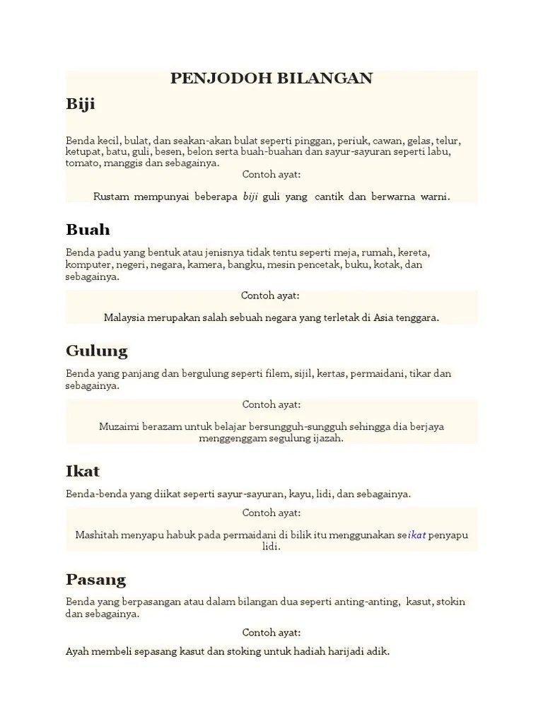 Contoh Ayat Penjodoh Bilangan Buah / Bahasa Melayu Flip Ebook Pages 1 4 Anyflip. 2 di dalam bilik itu terdapat beberapa buah almari lama. Zila membeli sebidang tikar getah di kedai itu. Adik memecahkan beberapa biji cawan ketika mencucinya.